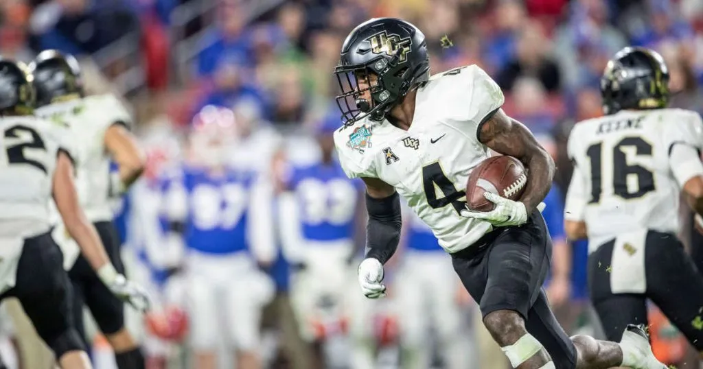 I want two players from the Golden Knights, their starting RB and WR. Back Isaiah Bowser was fed heavily down the stretch and finished with 703 yards, nine TDs, and also caught nine passes. He eclipsed 100 yards in three of his eight games, including 172 versus Boise State and 155 versus Florida in the bowl game.Β