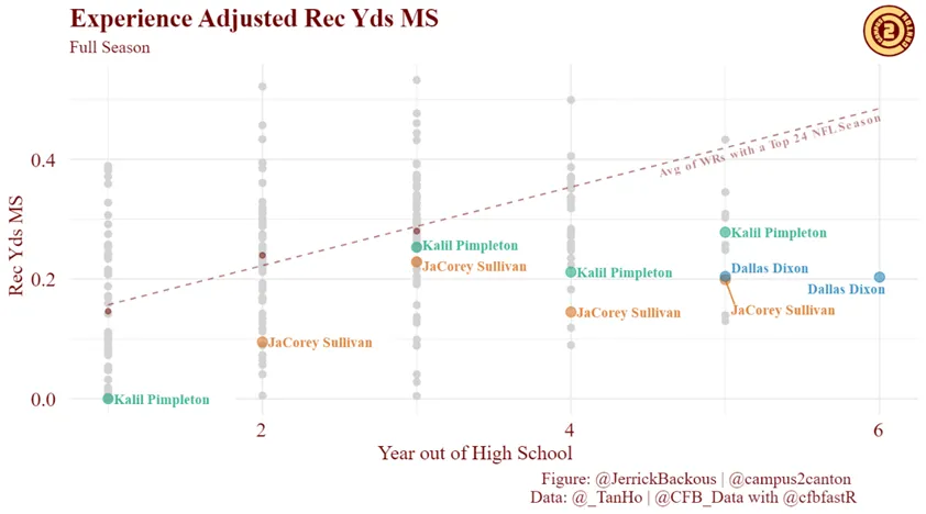 As mentioned above, nearly 50% of the receiving yardage is vacated, meaning thereβs a good chance someone steps up into relevancy. Dallas Dixon returns for his final season of eligibility after a 21% market share last season as the second-leading receiver behind Kalil Pimpleton. Transfer receiver Carlos Carriere comes in from Maryland and figures to have a role of sorts. You would have to be desperate to roster him.