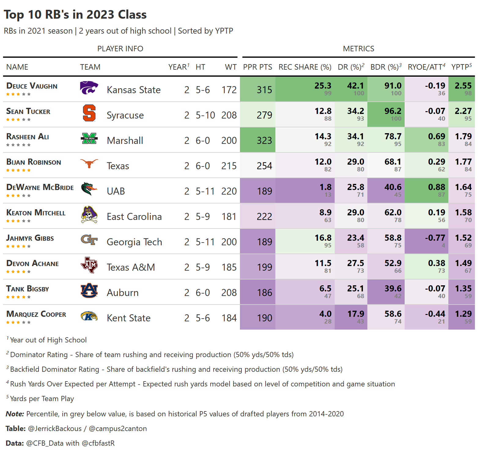 Rasheen Ali and the rest of the 2023 class for comparison. Image courtesy of @JerrickBackous. Data can also be found here.
