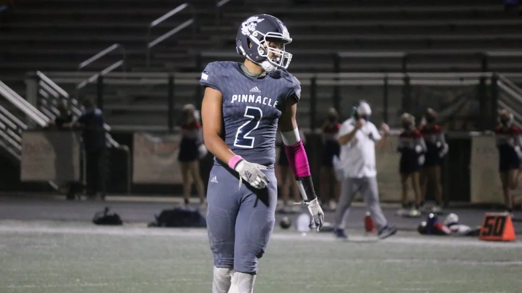 On top of all of this, he is reported to have an 80-inch wingspan (87%tile), which is absurdly long for a player his height. If all of that is not enough for you, at a camp, he was timed at 22.77 MPH (without pads). When you turn on the tape, his athletic ability is immediately noticeable. He is a very fluid mover and accelerates with ease. Tracy could also play CB in college, which is something to look out for. At the moment, though, there is no indication which side of the ball he will be playing on.