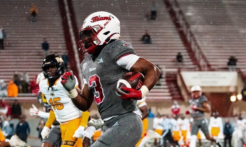 Miami of Ohio running back Keyon Mozee has eclipsed 100 yards in five straight games and six of his last seven games but only has three touchdowns on the season. That is a crazy low touchdown rate. What is even crazier is that none of those touchdowns have come from a red zone attempt. They have come on runs of 27, 58, and 74 yards. I have no way to determine if what I am about to say is true, but this is the first player in CFB history to run for 846 yards without a single red zone TD. Add in the fact that he has as many catches on the season as Abraham Lincoln; he becomes one of the least productive CFF RBs I can remember, with five straight 100-yard games.