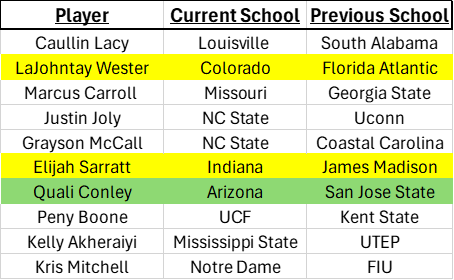Here are the top 10 G5 to P4 transfers in terms of preseason CFF ADP (per Fantrax). As you can probably surmise from this beautifully color coded chart, only one has been a hit by maintaining or improving their fantasy output. Sarratt and Wester haven’t produced at the same rate since transferring, but have at least been roster worthy. Lacy has been injured, but the rest have been either flat out bad or struggling to get reps.