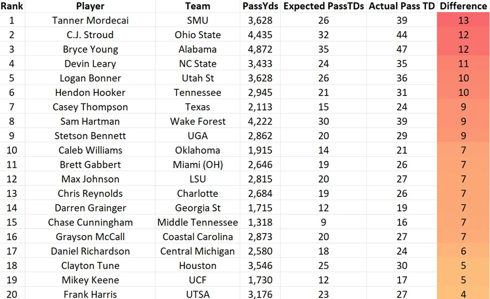 Quarterback Passing Touchdown Overperformance