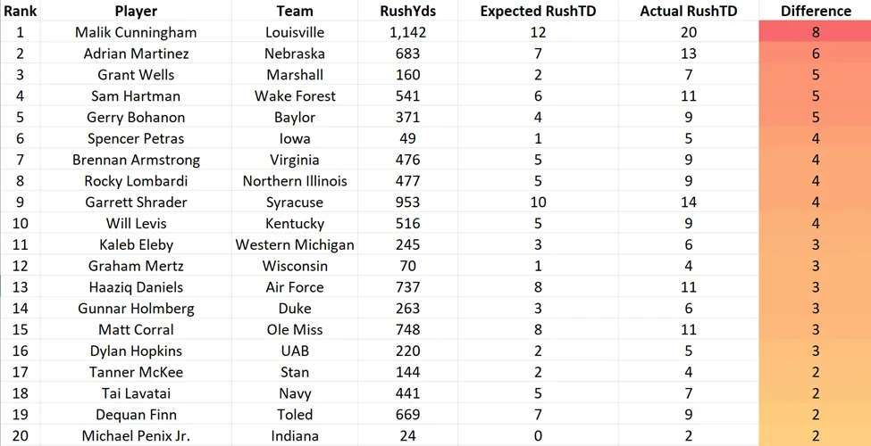 Quarterback Rushing Touchdown Overperformance