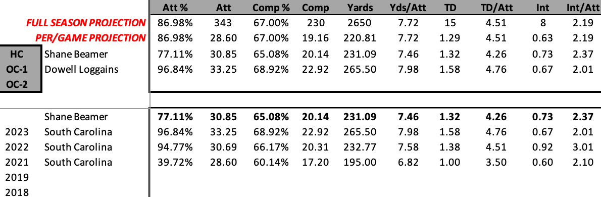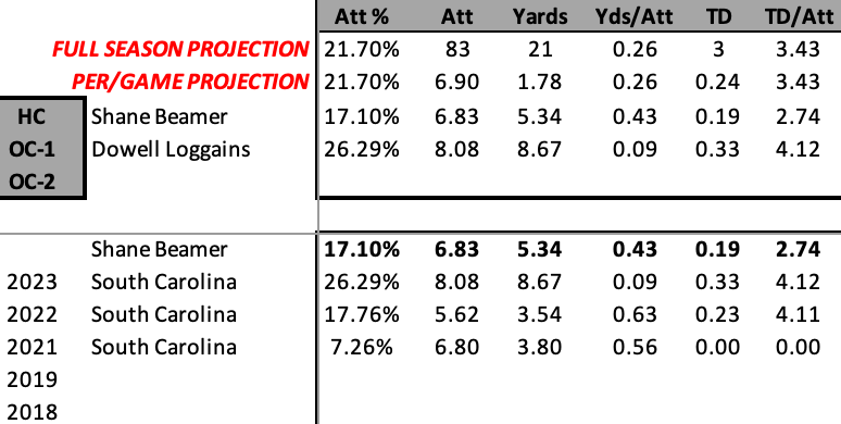 Sellers isnβt like any of the QBs that USCe has had under Beamer. But I still think itβs relevant to look at the historical patterns under this staff, so letβs do that.
